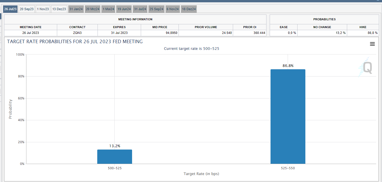 However, these positive indicators present a challenge for the Federal Reserve (FED) in its ongoing battle against inflation. The FED aims to observe the impact of its measures on the market. Yet, the data suggests that the current measures might still be too accommodating. As a result, market sentiment is increasingly inclined towards the expectation of another rate hike as early as July.